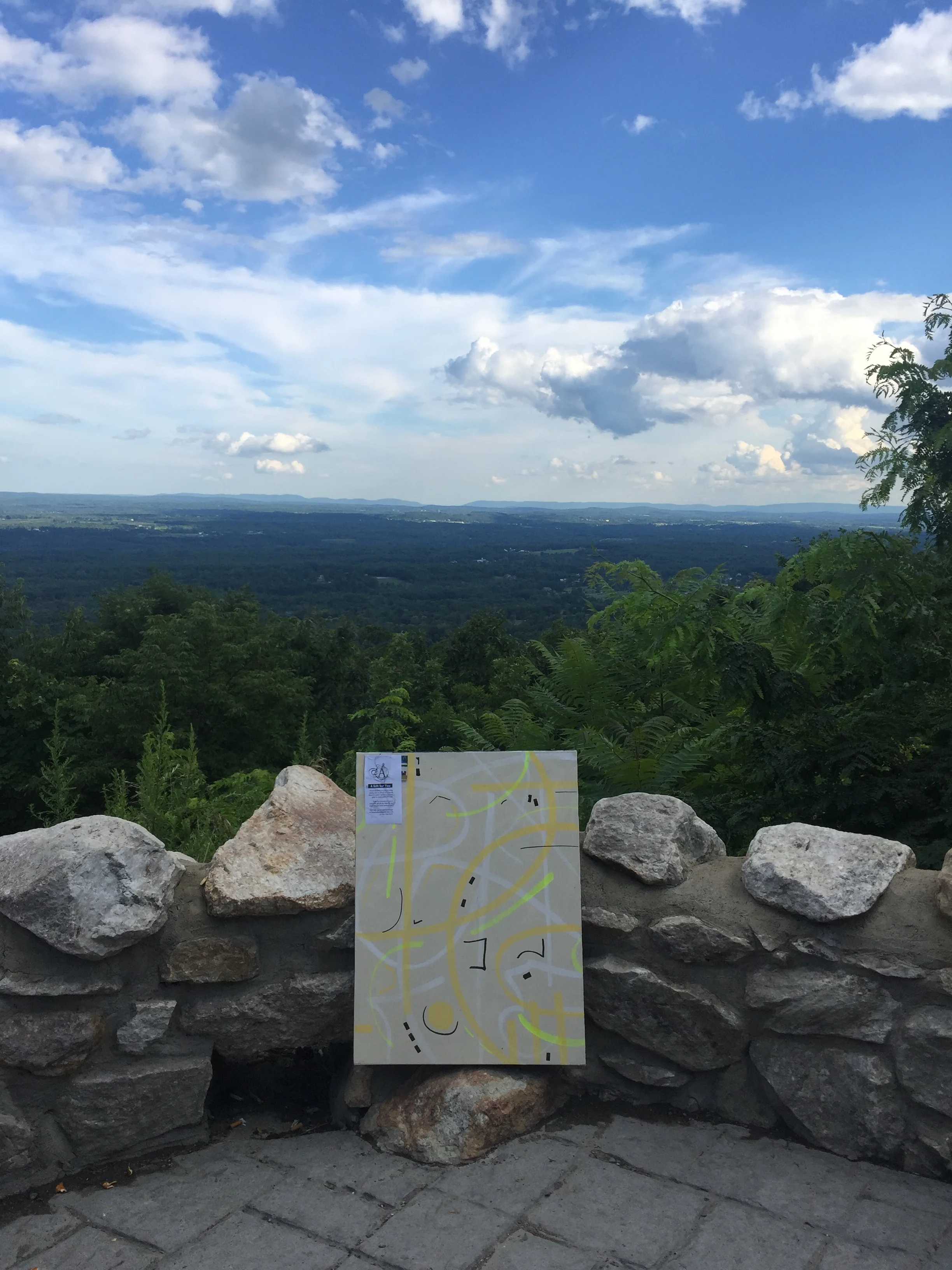 So we drove up to Lake Minnewaska and then to the over look. She wanted to stay and wait for someone to find the panting, to watch their faces light up and pick it up in their hands, to see what they would do with it after they read the card taped to the front of it. As we were leaving the overlook a woman did approach the painting, cautiously she pretend to ignore that it was there, only to look around for its owner before approaching it. Her face was studding the card, still unsure about what action she should take when Jenn and I rolled out of the parking lot.